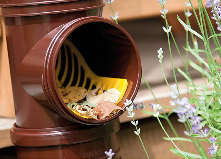 System odprowadzający wodę z rynien składa się z elementów, które łączą się ze sobą za pomocą kielicha wyposażonego w uszczelkę wargową. Stanowi idealne rozwiązanie dla domów wielorodzinnych, obiektów przemysłowych, obiektów użyteczności publicznej i budynków gospodarczych. W zależności od powierzchni dachu stosuje się czyszczaki o średnicy 110 mm lub 160 mm. Czyszczak Karmat może być używany z kształtkami rynnowymi różnych producentów, wykonanymi zarówno z tworzyw sztucznych jak i blachy. Najważniejsze cechy rewizji z sitkiem Karmat: