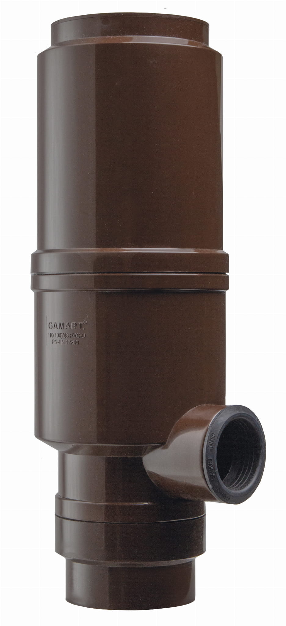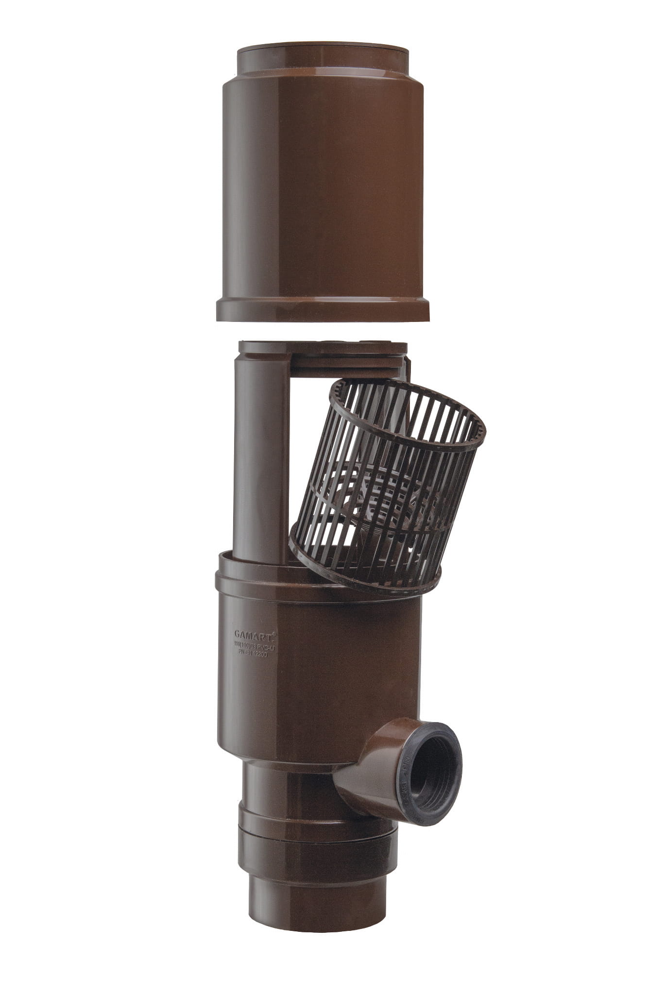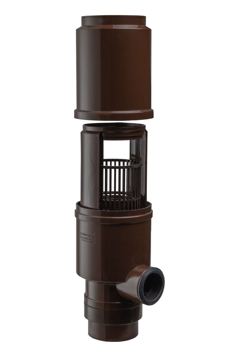 Łapacz wody deszczowej z rewizją przesuwną PVC o średnicy Ø100/50 mm - wersja PRO 2023 (brązowy)