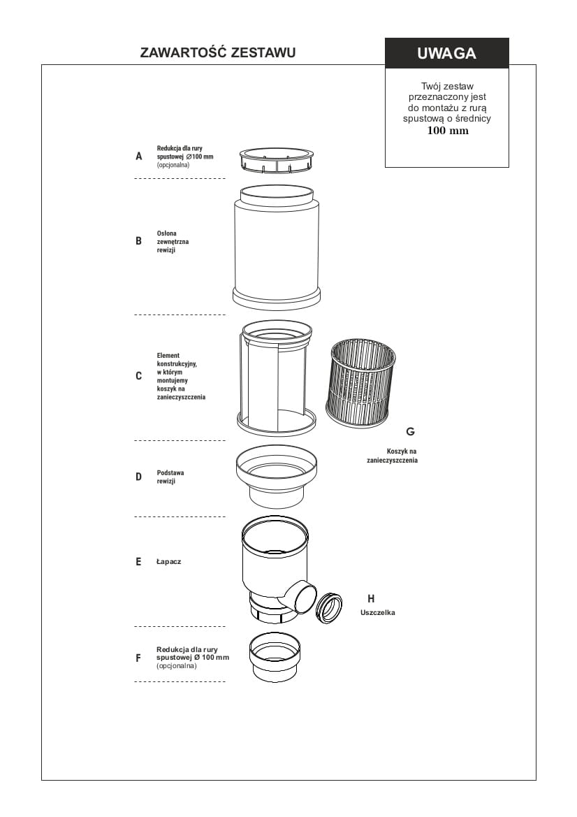 - gumowa uszczelka 63/50 mm (w komplecie z łapaczem)